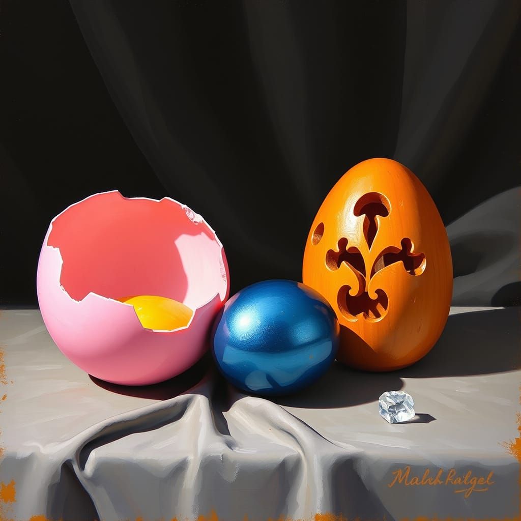 Easily generate your own egg still life paintings with our free AI image generator, featuring vibrant colors and unique styles