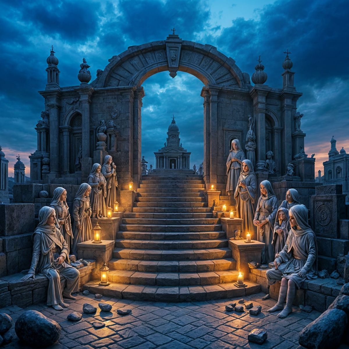 Easily generate your own stunning AI images of stone stairways reaching for the sky. It's free and simple!