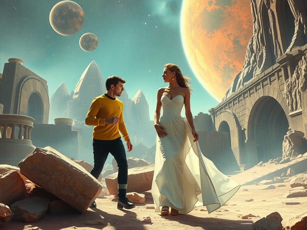Star Trek: kirk and spock are down on professor crater's planet searching ancient ruins looking for the salt vampire with has assumed the shape of a beautiful woman, series premiere on tv san jose motel room 1966 Tim Burton holographic IMAX Behance HD Unreal Engine 5 trending on Artstation 8K resolution ...