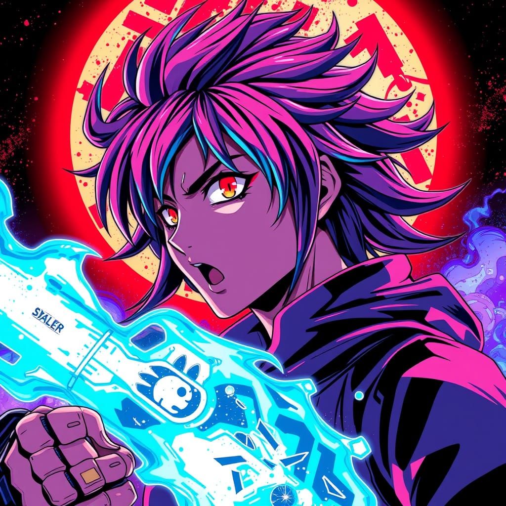 This vibrant anime artwork features dynamic characters and intricate details, reminiscent of Studio Trigger's signature style, with deep colors and bold lines that evoke the cinematic lighting of an anime masterpiece.