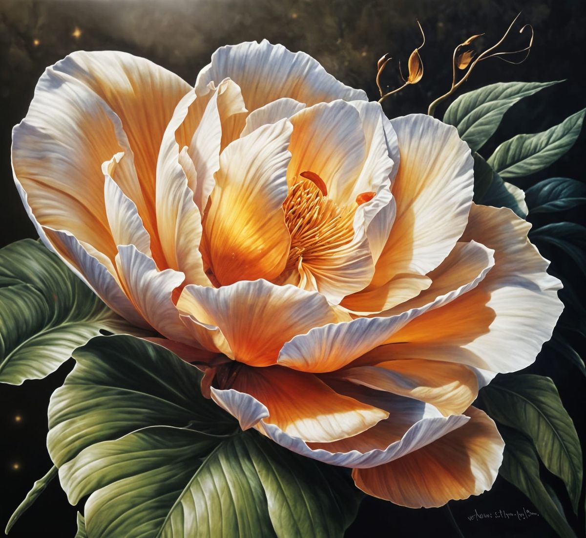 a photorealistic painting, visually arresting, dramatic artistry, an airbrush painting, meticulous detail, magic realism, visible brushwork, inviting atmosphere, depth and vibrancy, aesthetic impact, a fine art painting, detailed texture, blended brushstrokes suggest movement, surreal and harmonious, ...