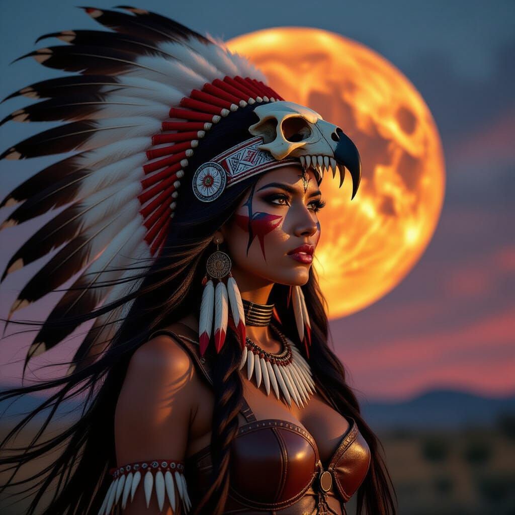 Generate photorealistic Native American warrior images with flowing hair and leather bustiers. Try our free AI generator!