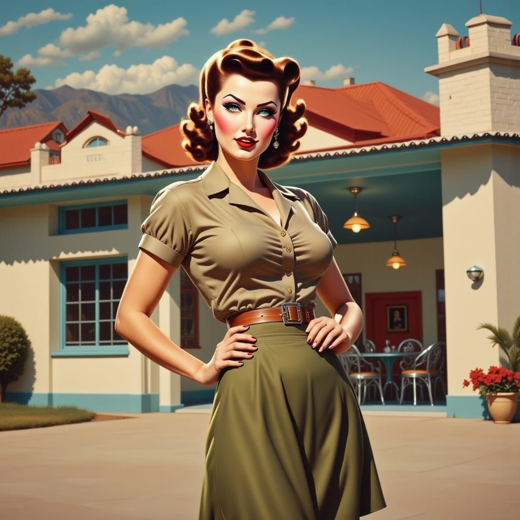 Design unique 1950s pinup soldier images with our easy and free AI generator. Your vision, brought to life!