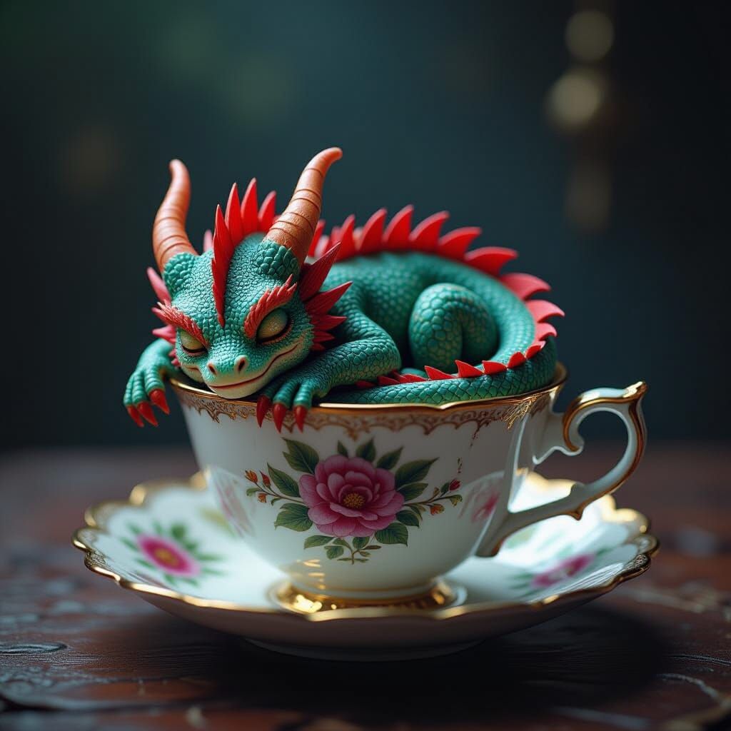 Easily generate unique images of tiny dragons sleeping in teacups with our free AI tool. Get creative now!