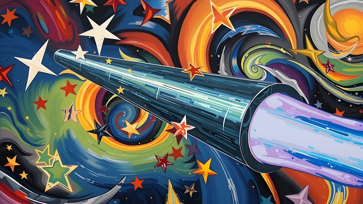 This image showcases a gleaming, perfectly smooth hollow cylinder with a vibrant, high-velocity exhaust. It's set against a backdrop of a swirling, colorful vortex of paint and plasma, evoking a sense of unbounded motion.