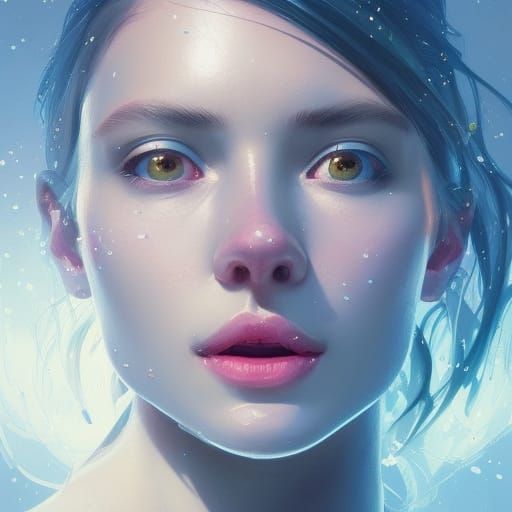 This image shows a hyperdetailed head and shoulders portrait of a person. Dynamic lighting and intricate details are rendered in triadic colors, creating a splash art effect with volumetric lighting.