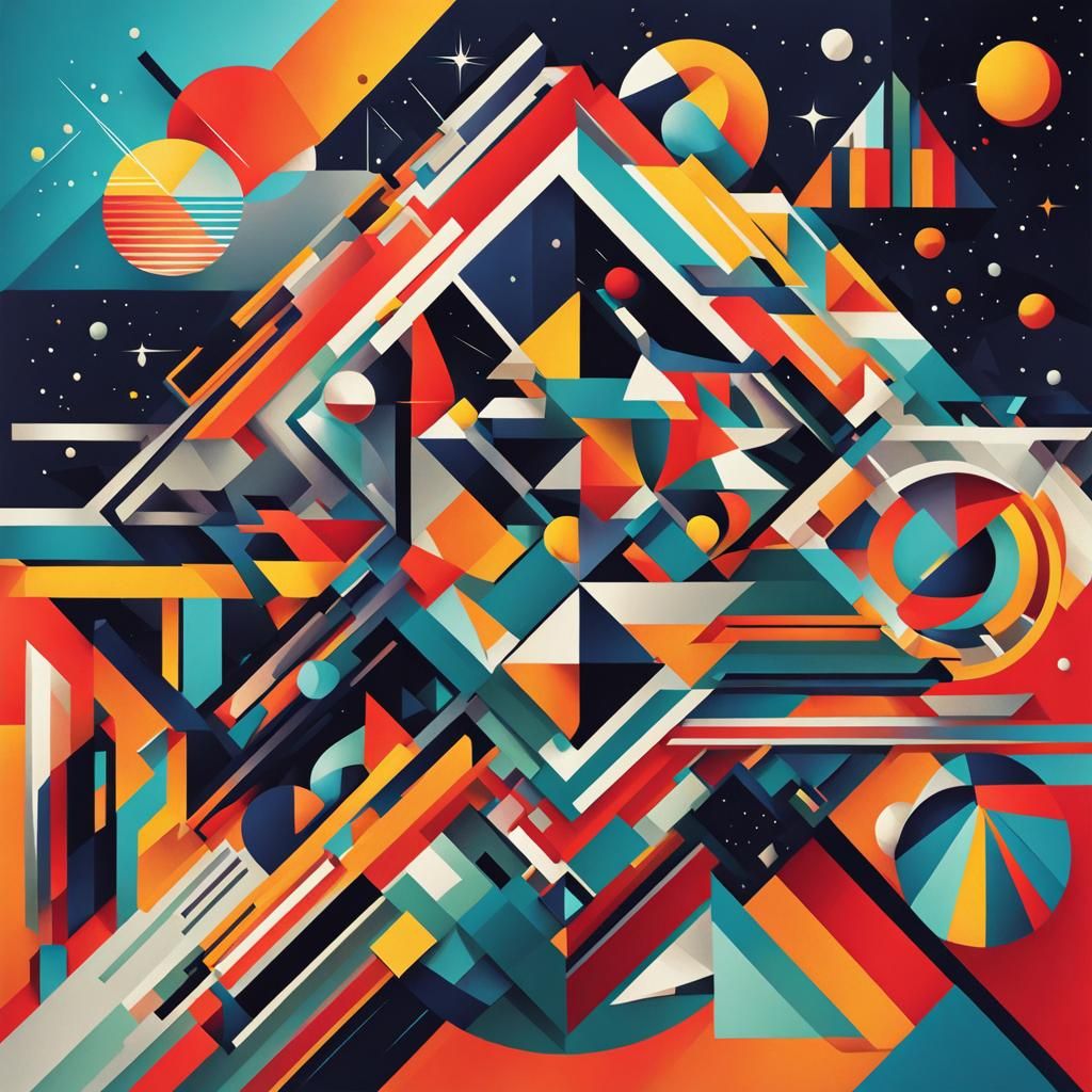 A vivid, hand-drawn depiction of the universe. This artwork blends cubist and art deco elements using layered geometry to create a maximalist and angular composition.