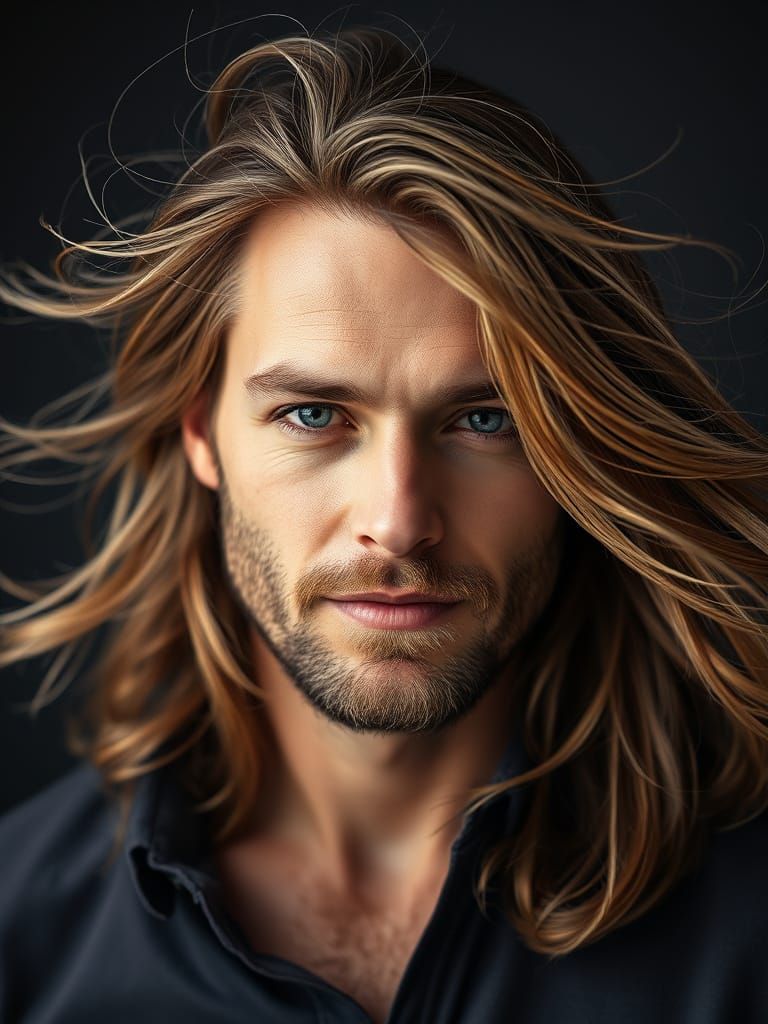 Create your own ethereal portraits of handsome men with long, flowing hair using our free AI image generator.