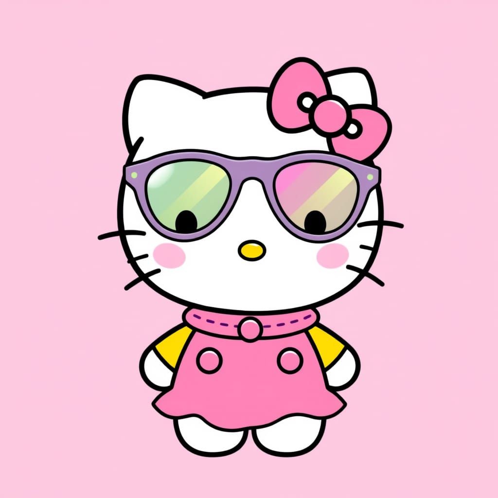 Easily design your own Hello Kitty characters with colorful accessories and pastel pink backgrounds using our free AI image generator
