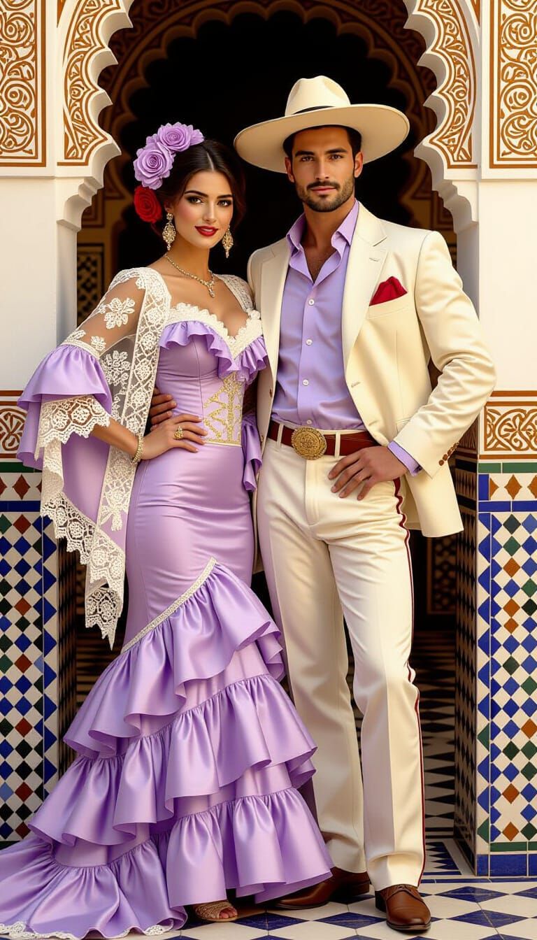 Easily generate your own images of Spanish couples in traditional flamenco attire, completely free.