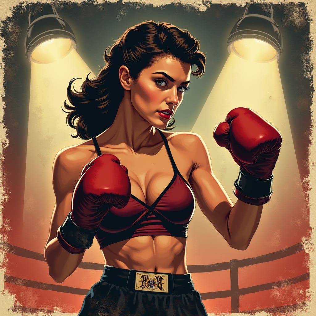 Generate your own vintage boxing posters featuring powerful female boxers. Free and easy to use!
