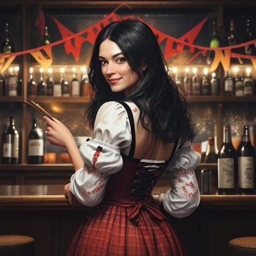 Easily create your own images of beautiful bartenders in stylish Bavarian outfits with our free AI image generator.