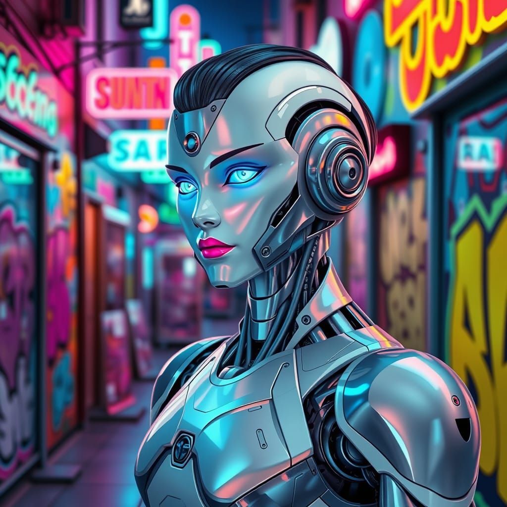 Create your own futuristic robots and cyberpunk scenes. It's free and easy with our AI image generator!