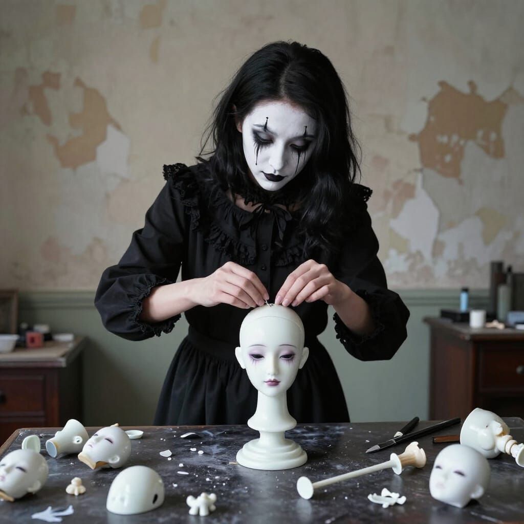 The porcelain look of the doll and her makeup is amazing! Reminds me instantly in the feeling of raw porcelain pieces between my fingers and how filigree this material is. Beautiful scene 😺