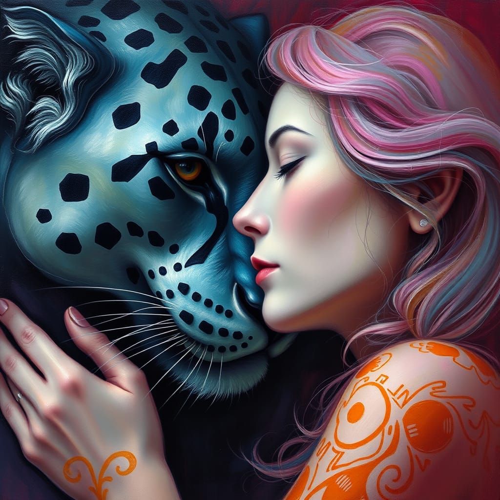 This abstract artwork visually represents unattainable desire and intense passion. It features fine details, complementary colors, and a soft yet ethereal quality, inspired by surrealist and symbolic dreamscape art.