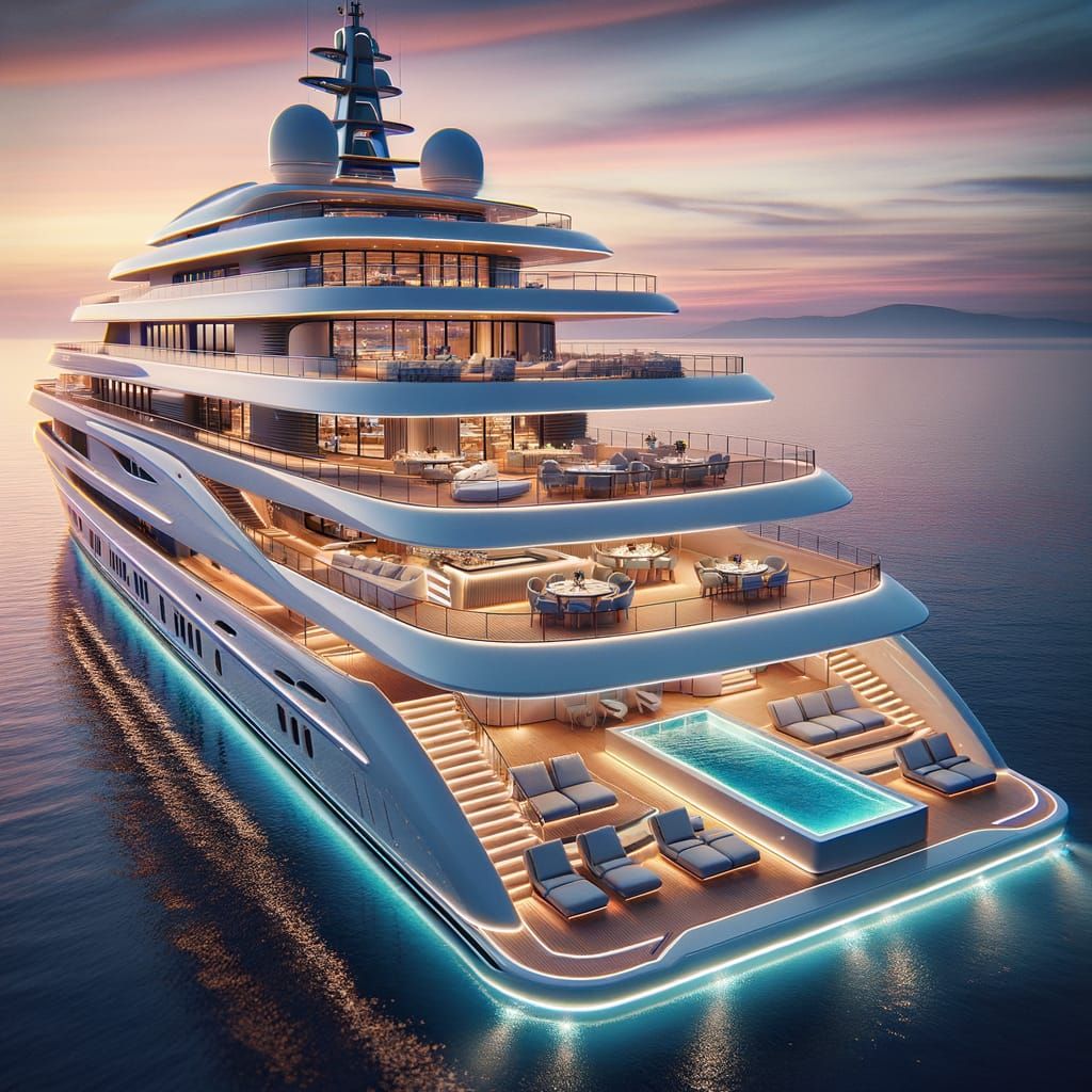 Design stunning luxury superyachts at sunset with our free and easy AI image generator.