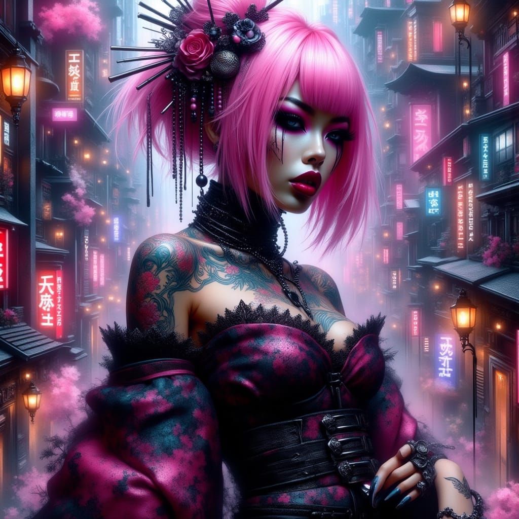 Easily generate your own unique gothic fashion images with pink hair and blue eyes using our free AI tool.