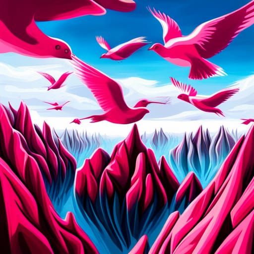 A vibrant image of pink and grey galahs in flight. The artwork showcases graffiti, street art, and splash art elements with high contrast and colorful, ultra-detailed rendering.