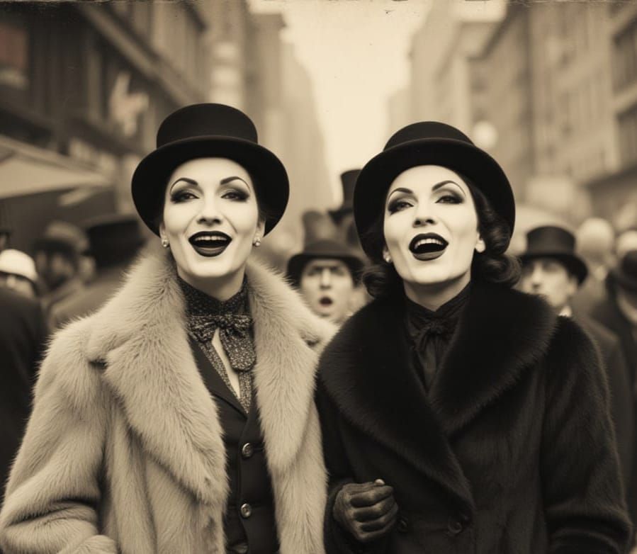 Shout out to Alice Deeper Music Project @PupX for creating another fabulous LoRA! I imagine these ladies used to dance burlesque in their younger days, in a small venue a few blocks from Broadway. They had dreams of performing in a musical in one of the glamorous theaters on Broadway, but that dream faded away. This is a dream sequence, and the ladies finally get their chance to sing for a larger crowd outside the theater district.