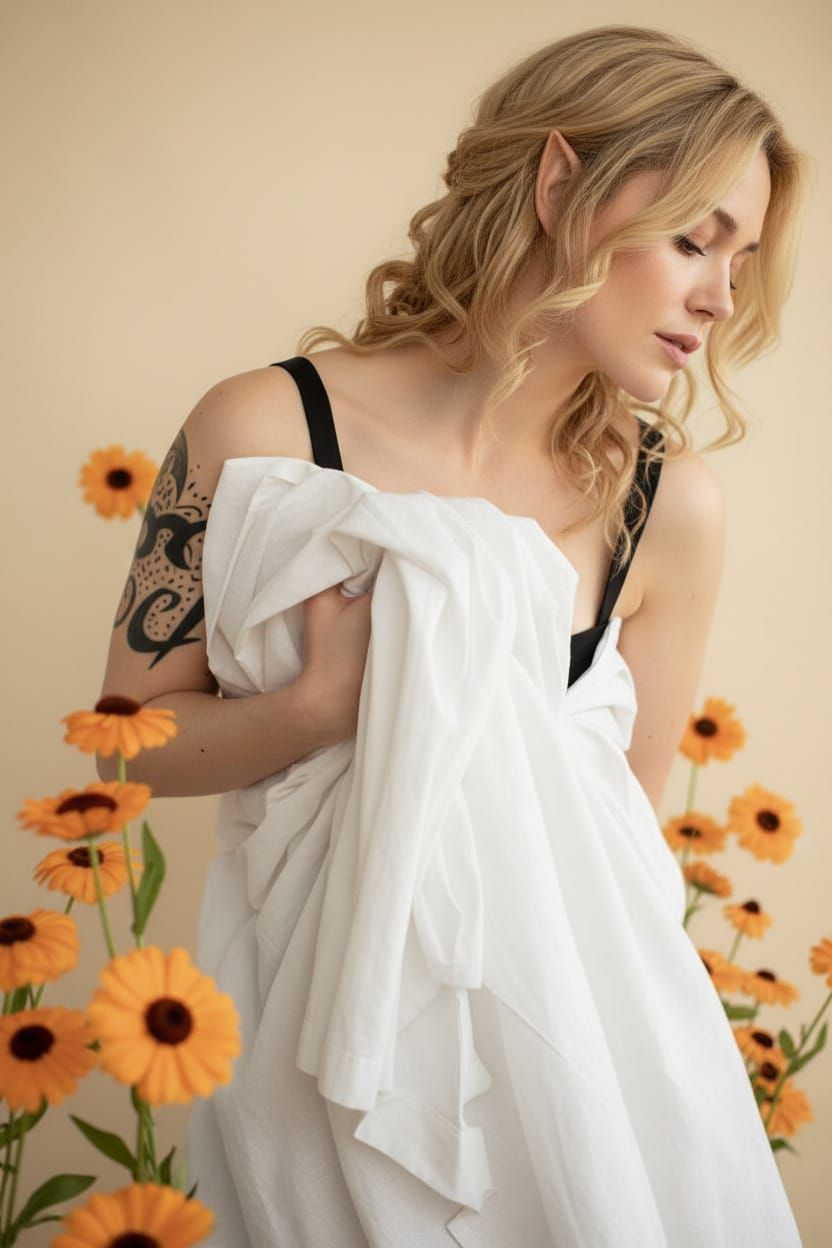 This image showcases a hyperrealistic portrait of a woman, meticulously crafted from photographic elements. The result appears as a genuine person captured with professional camera quality, emphasizing authentic skin texture and natural features.