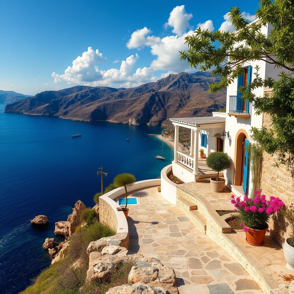 Create your own breathtaking Greek summer landscapes with our AI image generator. It's free and easy!