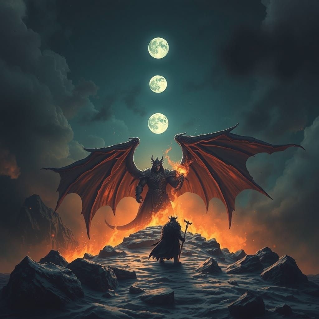 A striking picture of a powerful warrior king standing under the moon, radiating fear and wrath, with a storm of vengeance in his heart, in a cyberpunk aesthetic