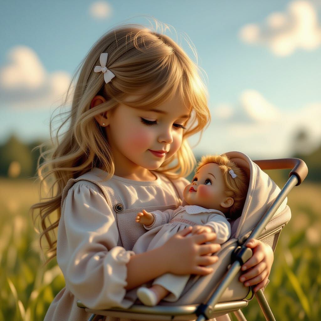 Easily generate unique images of dolls, doll strollers, and children playing with dolls using our free AI image generator.
