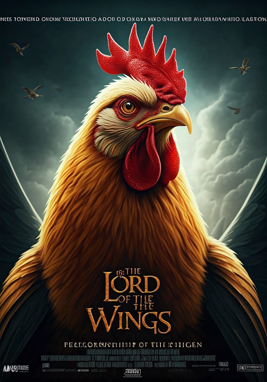 A parody movie poster featuring chickens in a fantasy setting. The art is designed to resemble a movie poster with comedic elements.
