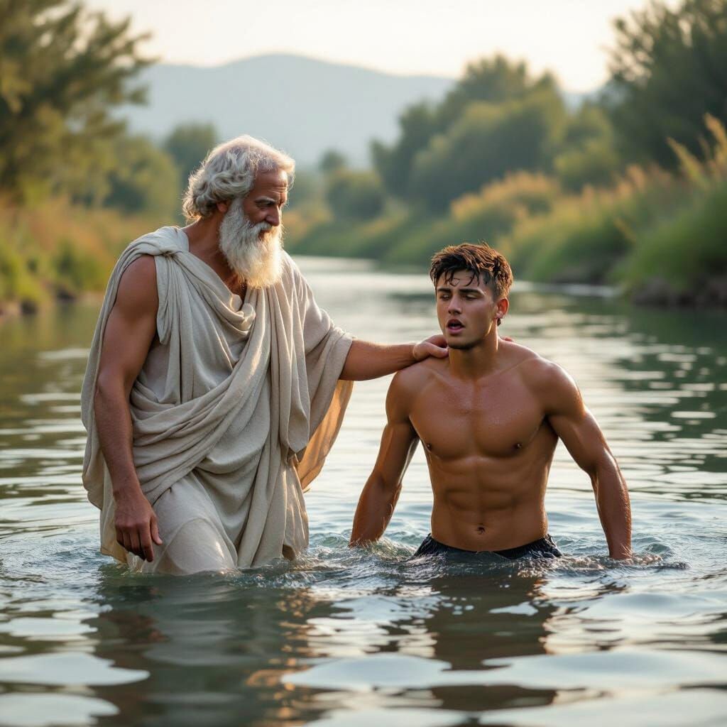 Socrates and young man meet near river morning. Socrates gestures to walk into water. Water reaches neck. Socrates suddenly pushes him underwater. The boy struggles hard. Boy’s face turning blue, bubbles rising. Socrates holds steady. Socrates pulls him out. Boy gasps loudly, breathing heavy. Socrates asks question. Boy replies “Air!” Text appears bold: “AIR”. Final ending: Socrates points upward. Road appears again leading to SUCCESS. Character runs with fire in heart. i want you to generate 3d pixar animation at 16:9 ratio seperately for each situation