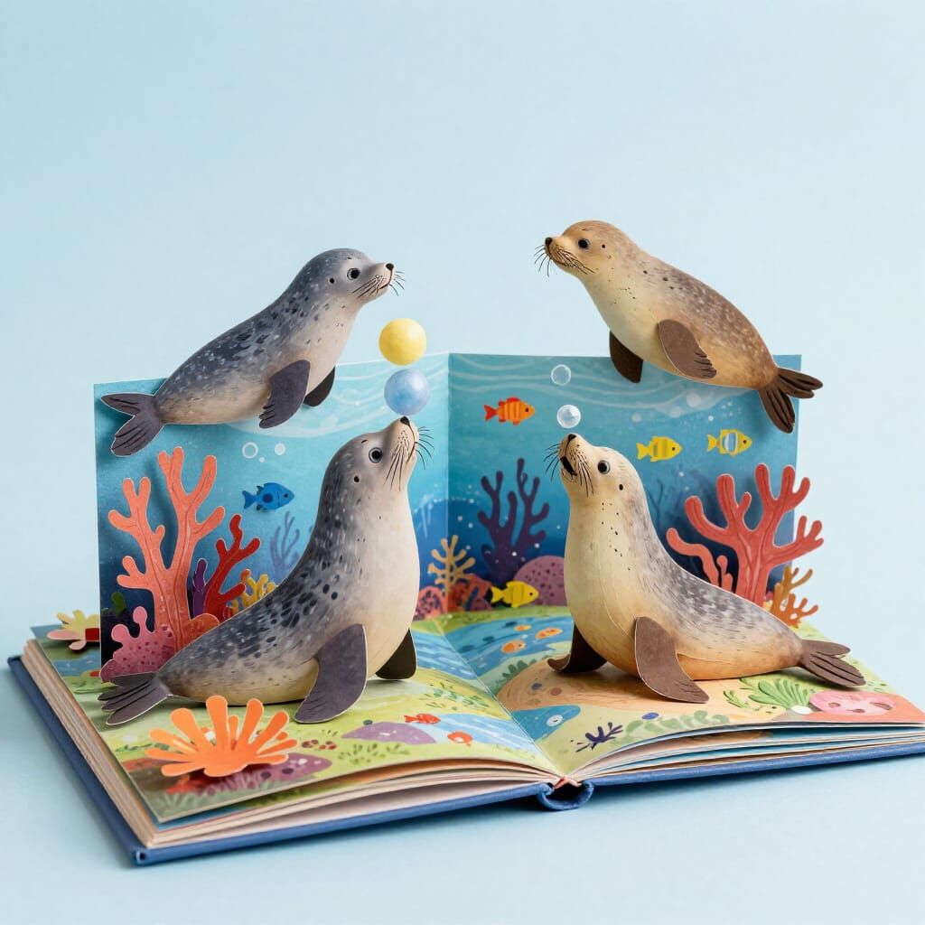 Design your own unique popup book creations featuring seals and sea lions easily and for free with our AI image generator.