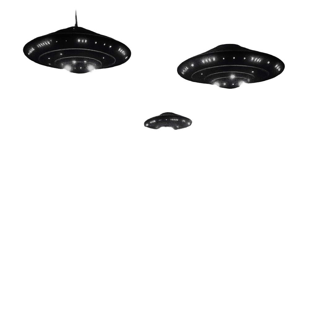 This image depicts a post-apocalyptic cityscape under siege by retro-futuristic hovering machines unleashing green laser rays. Smoke rises from ruins amidst a stormy night sky, evoking a vintage sci-fi B-movie aesthetic.