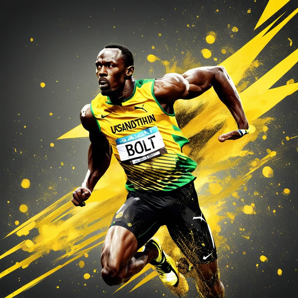 A dynamic image of Usain Bolt against an abstract background. The composition captures Bolt's speed and energy with vibrant colors and a sense of motion.