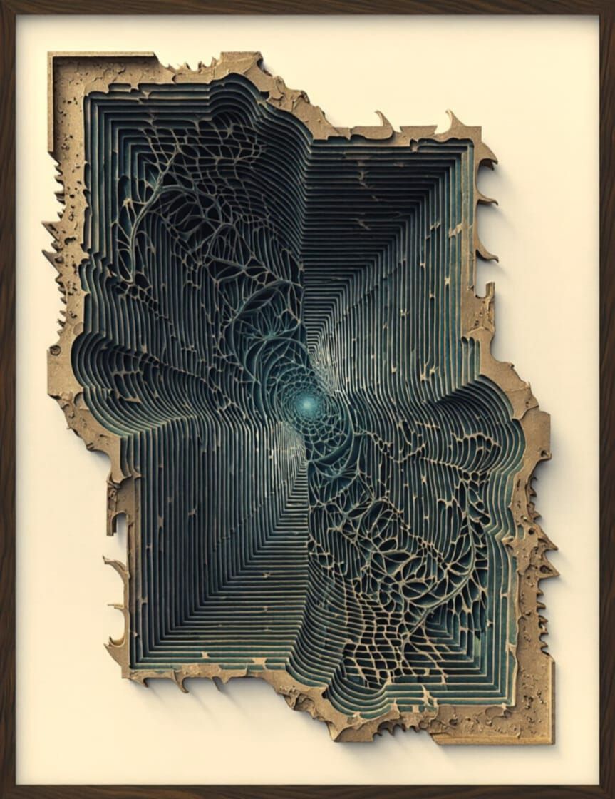 sonorous joy in subdimensionality by artist print music kirigami by artist architectural fragment by artist dramatic dynamic textural lighting by artist mechanical infrared fractal by photographer Siosepol Isfahan oil slick terrestrial underlit landscape
