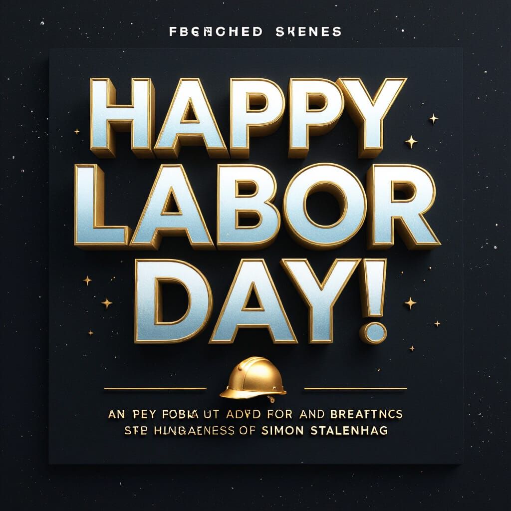 This image shows a sleek, professional announcement for DAPEX wishing a Happy Labor Day. The design features elegant golden 3D text and a worker's helmet icon against a matte black backdrop in a futuristic aesthetic.