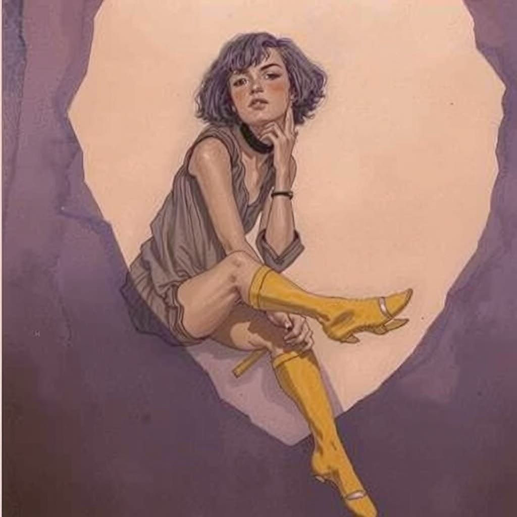 A beautiful woman rendered in a distinctive watercolor and ink style, reminiscent of classic comic art. The artwork features flowing lines and soft color washes.