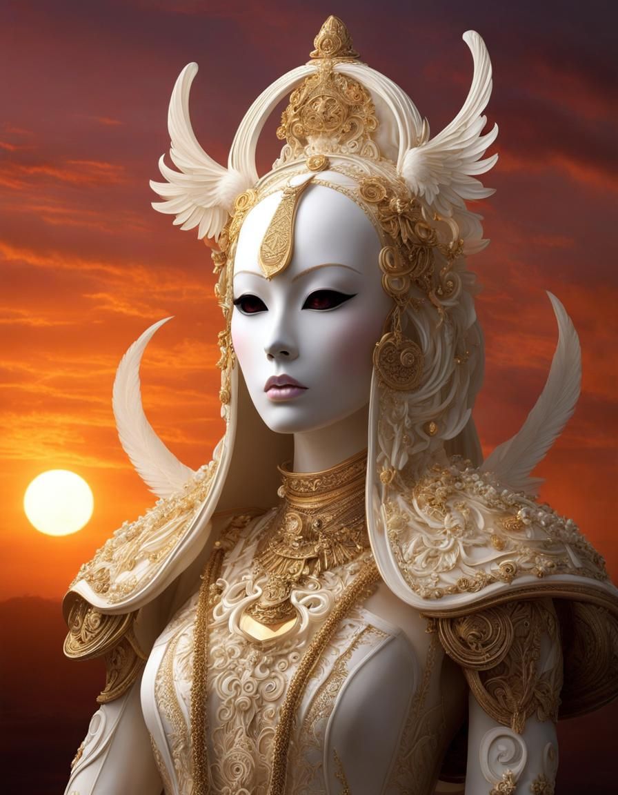 you said I reminded you of a ghost well how do you know I'm not one embodied ivory-white anthropomorphic snippers intricate and silly designs have a pointless yet spectacular charm in an uncanny necromantic (sunset:3) photorealm