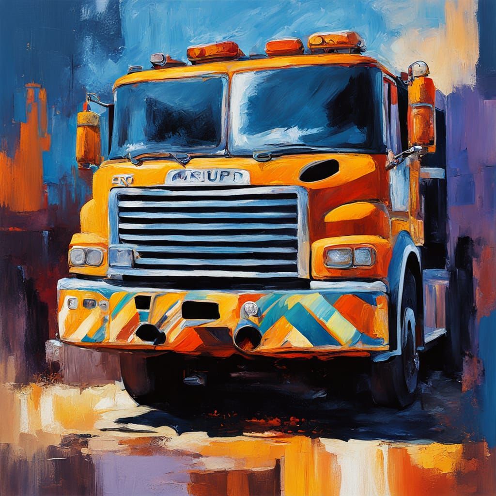 A vibrant landscape painting rendered with thick brushstrokes in an expressionist style. The artwork features textured paint layers and complementary colors, illuminated by golden hour lighting. Digital art.