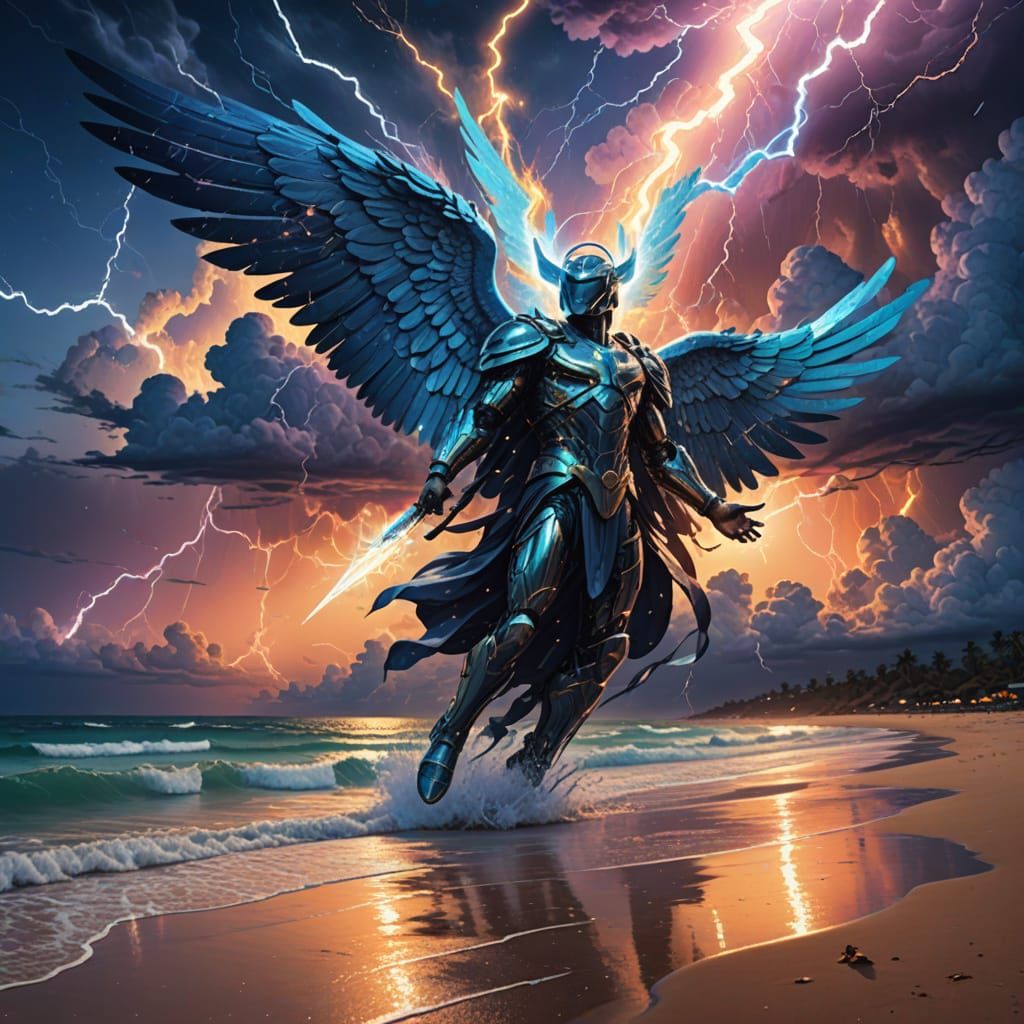 Easily design your own beach scenes with lightning and archangels using our free AI image generator. No experience needed!