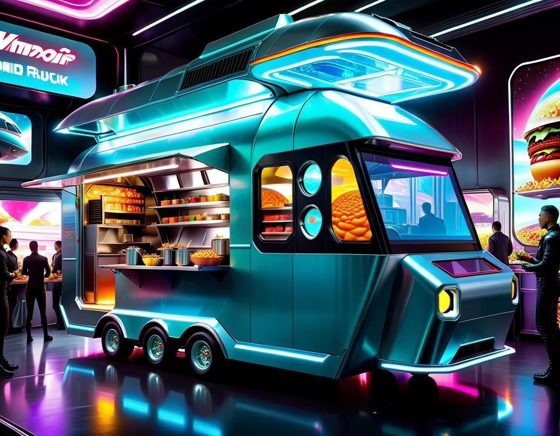 Design your own futuristic foodtrucks with our free AI image generator. It's easy and fun!
