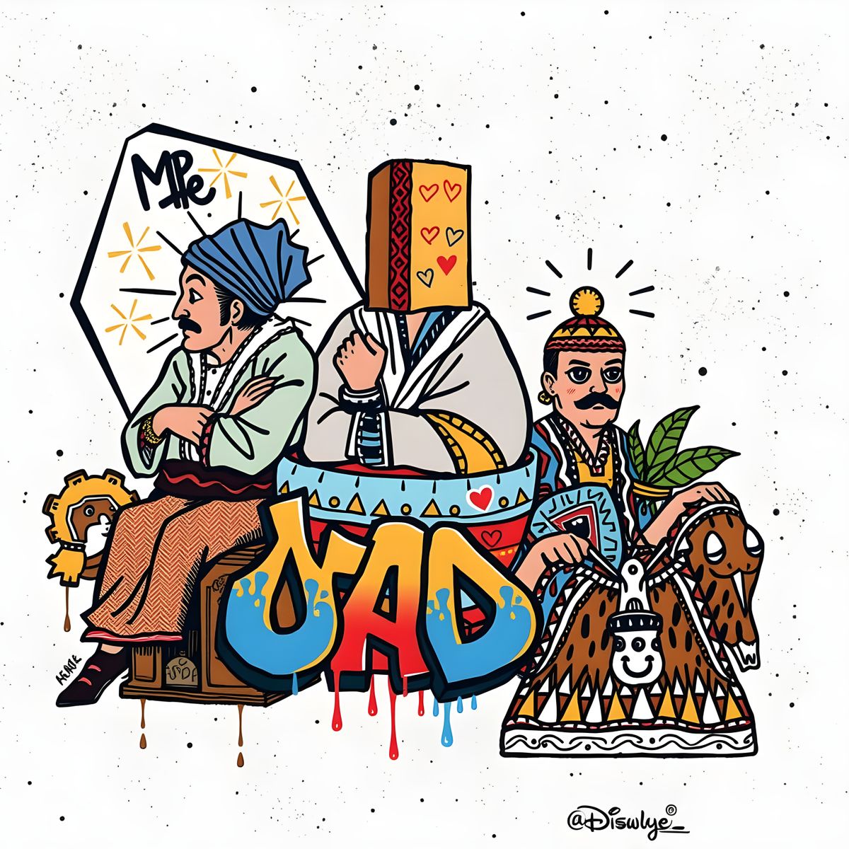 This image shows a fusion of Moroccan and streetwear elements. It blends traditional mosaics and Atlas imagery with modern graffiti and urban style, creating a unique visual experience.