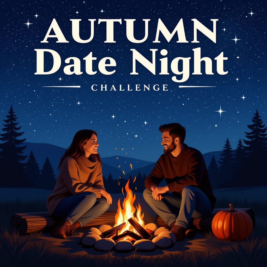 A captivating image of a couple stargazing by a bonfire on an autumn night. The warm firelight illuminates their faces under a twinkling night sky, rendered with hyperrealism.