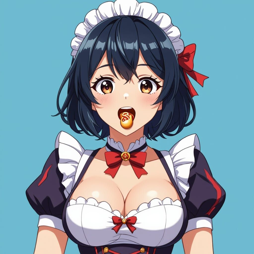 This image shows Noelle from Genshin Impact in a maid outfit, mouth open in surprise. The vibrant, anime-inspired style is reminiscent of iconic artists, creating a captivating and detailed portrait.