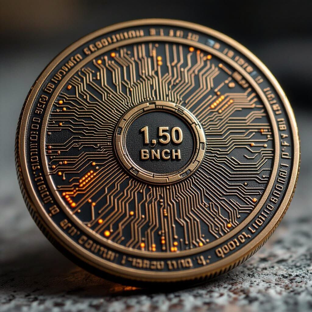 A detailed bronze cybersecurity coin featuring circuit patterns and binary code. The futuristic design evokes a cyberpunk aesthetic.