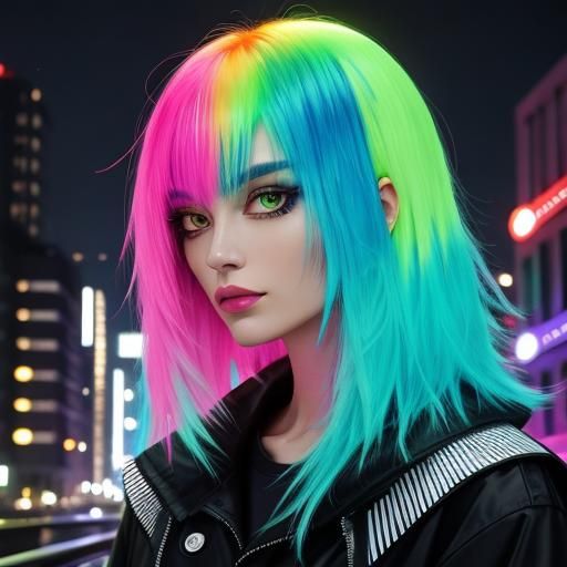 Create your own vibrant fluorescent hair dye images with our free AI image generator!