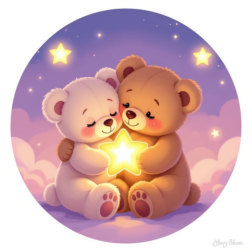 This heartwarming image features adorable bears embracing twinkling stars, evoking a sense of comfort and gentleness. Perfect for a cozy and sweet aesthetic.