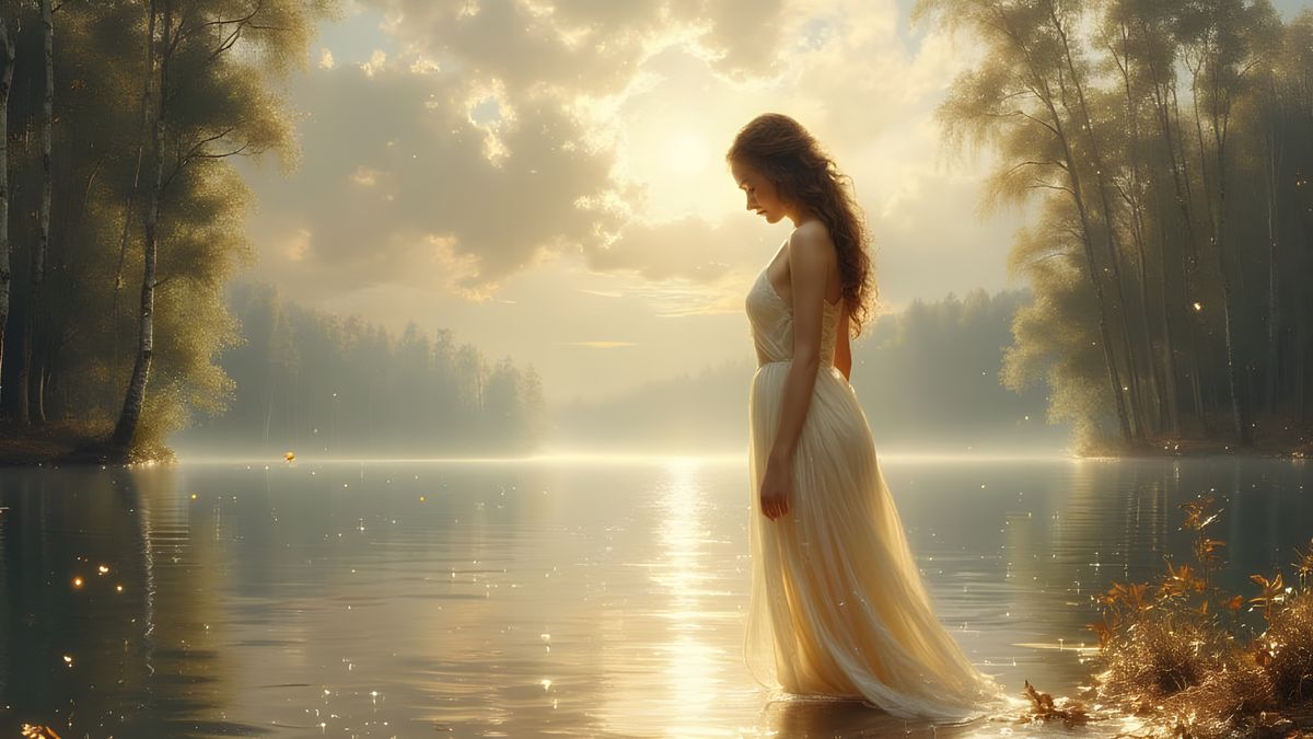 <lora:Exquisite Flux:1.0> A human, emotional fantasy getaway portrayed as a museum-quality oil painting on canvas: a serene, imagined landscape shaped by stillness and longing, where nature feels intimate and alive. A beautiful Aphrodite appears not as a distant goddess but as a deeply human presence—gentle, ...
