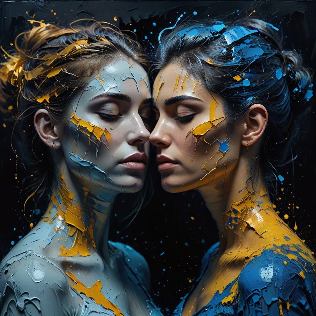 OIL PAINTING WITH DYNAMIC AND ROMANTIC COLORS TO ENTAIL BOTH LOVE AND BETRAYEL WITH LIFE AND DEATH LIGHTING