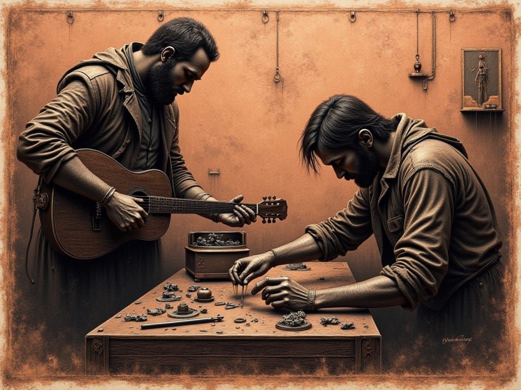 This image showcases detailed copper etching art with fine lines and subtle tonal variations. It features a monochromatic palette and a palpable sense of depth, inspired by classical printmaking techniques.