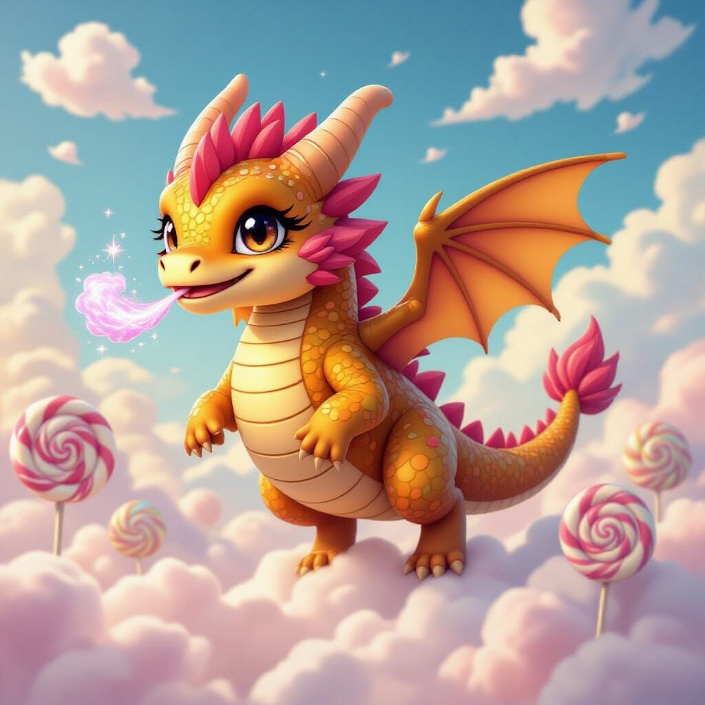 Create your own adorable candy dragons soaring through fantastical landscapes with our free AI image generator.