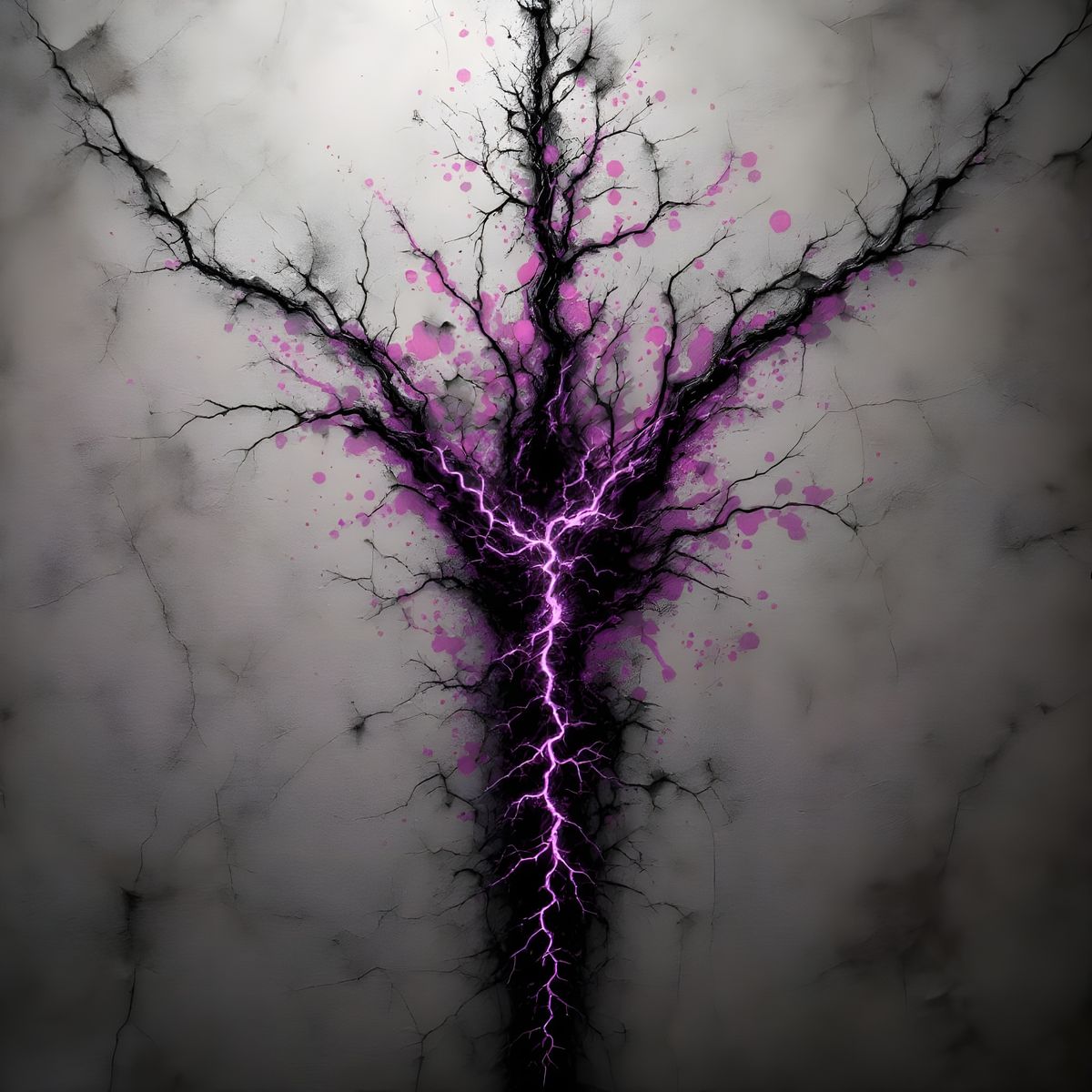 This haunting artwork captures a downward spiral of mental fragility, with a cracked, eroded background and a vein-like structure that glows with a faint, poisoned light. Distorted typography and oil-slick colors add to the sense of despair and desperation.